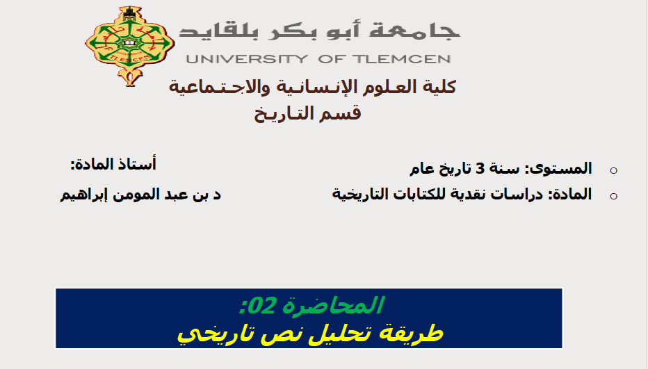 المادّة : دراسات نقدية للكتابات التاريخية