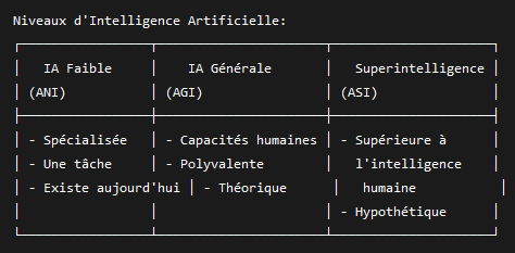 IA Faible (ou étroite) : Spécialisée dans une tâche précise. C'est l'IA que nous utilisons aujourd'hui.