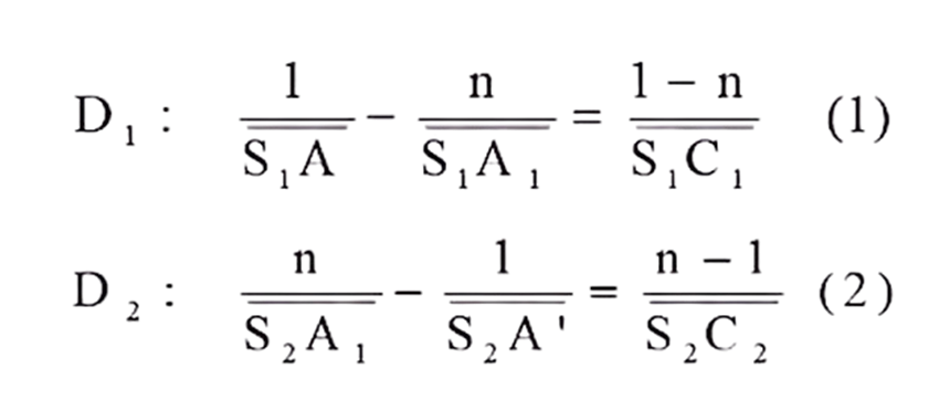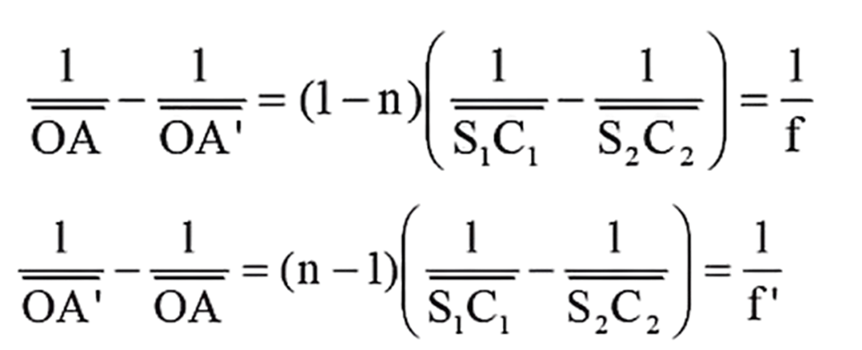Thus, using the relations for spherical diopters.
