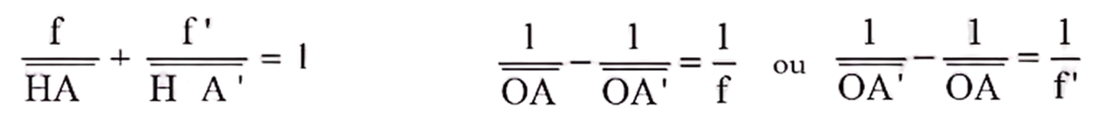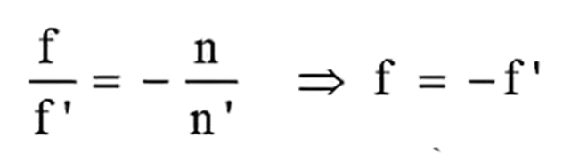 If the thin lens is now considered as a centered system immersed in a medium of refractive index n (so n=n), then one can write: