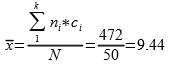 ادا كانت لدينا بيانات مبوبة او مكررة أي تكون مرتبة في شكل جدول توزيع تكراري وكان المتغير الإحصائي المدروس متغير كمي منفصل فان المتوسط الحسابي يكون حسب العلاقة التالية