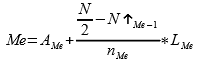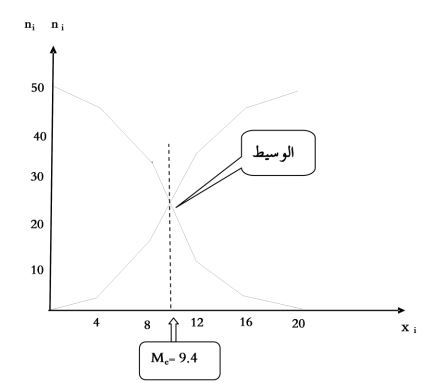 ومنه قيمة الوسيط بالعلاقة السابقة: