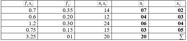 الجدول يمثل توزيع 20 اسرة حسب عدد اطفالها